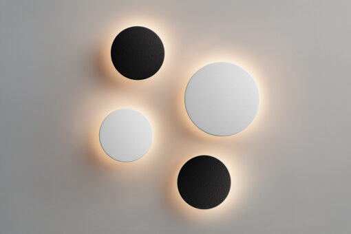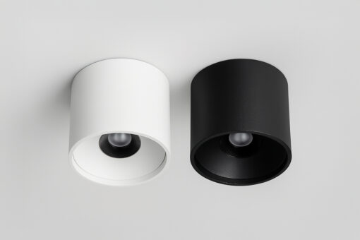 Luminaria decorativa LED tipo aplique de sobreponer en acabado negro, luz cálida 3000K. Diseñada para iluminación interior con uniformidad y confort visual, integrándose con equilibrio en ambientes residenciales y comerciales.
