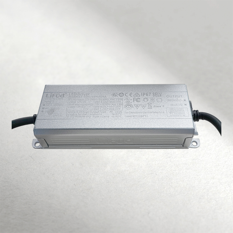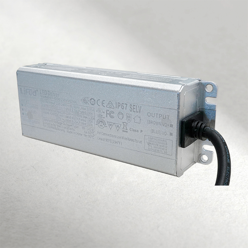 Driver LED profesional de la marca LIFUD, diseñado para alimentar cintas LED de 24V con alta eficiencia y confiabilidad. Ofrece una potencia de salida de hasta 150W, con una corriente constante de 1.35A, ideal para instalaciones de gran escala en ambientes exigentes. Su diseño compacto y robusto con protección IP67 lo hace perfecto para aplicaciones en interiores y exteriores.