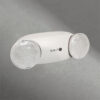 Luminaria LED de sobreponer para iluminación de emergencia; diseño moderno. Carcasa termoplástica, con cabezales redondos ajustables, lente de plástico para una distribución optima de la luz. Batería en Niquel Cadmium, con recarga automática, libre de mantenimiento, con auto diagnostico y una autonomía de 90 minutos. Posee botón de prueba.