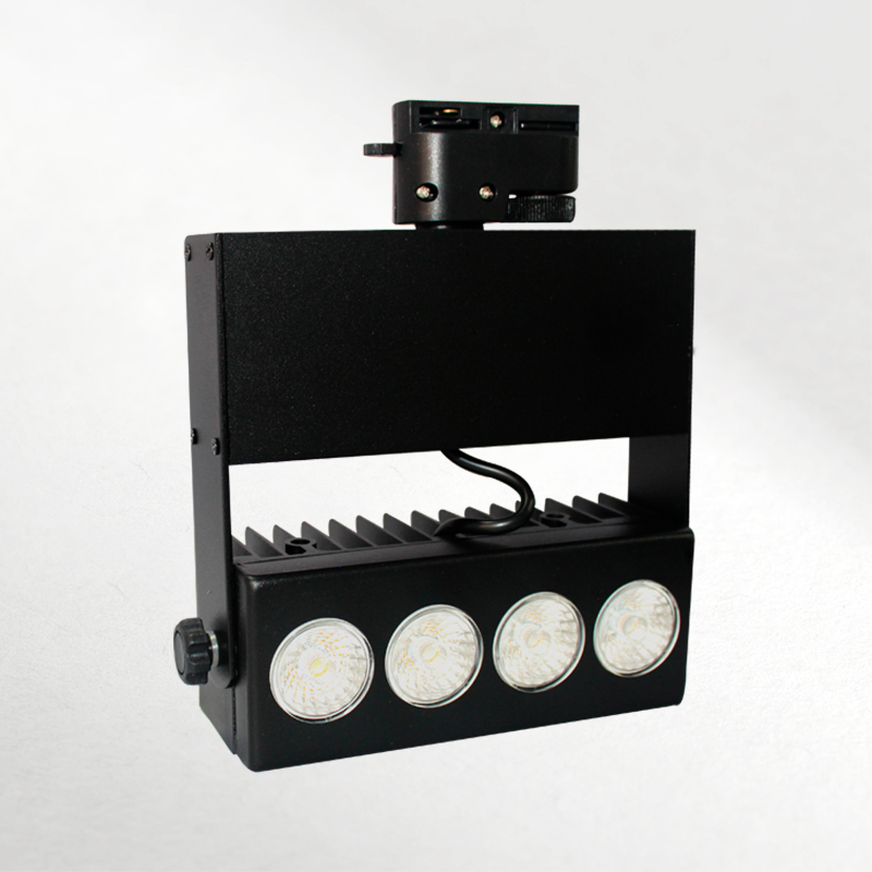 Luminaria de LED tipo Spot escualizable para riel de 2 vías, ideal para resaltar diversos objetos y espacios. Este producto de iluminación focalizada cuenta con un sistema de giro de 360° en sus ejes horizontal y vertical; ideal para aplicaciones comerciales y en menor grado residenciales tales como almacenes, vitrinas, galerías, superficies de texturas especiales, cuadros, entre otras.
