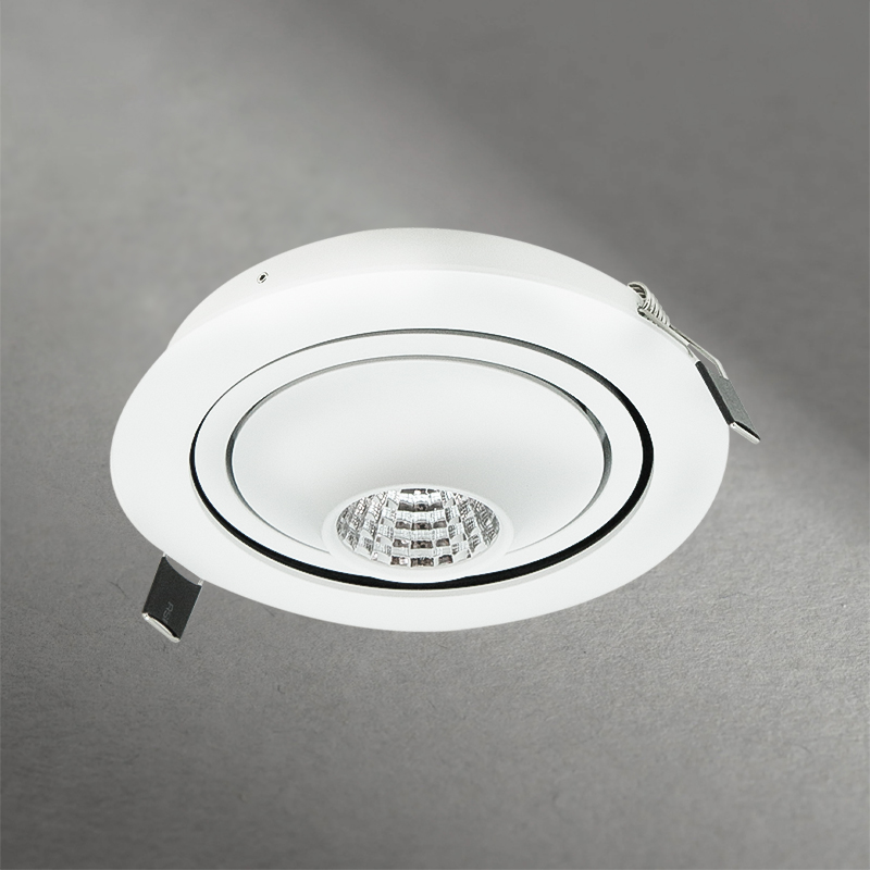 LCL105 – STRYN – Lámpara LED downlight redonda con diseño moderno y versátil. Este producto cuenta con un sistema de giro de 360° en su eje horizontal y de 90° en su eje vertical. Ideal para aplicaciones tanto comerciales como residenciales tales como: almacenes, centros comerciales, casas, apartamentos, superficies de características especiales, obras de arte, entre otros. SDCM ≤ 3