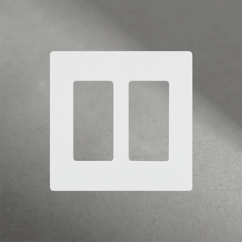 Placa para dos dispositivos Lutron de diseño elegante, fabricada en plástico brillante blanco, ideal para complementar cualquier espacio con un toque moderno y funcional. Perfecta para interruptores y controles, brindando un acabado limpio y sofisticado.